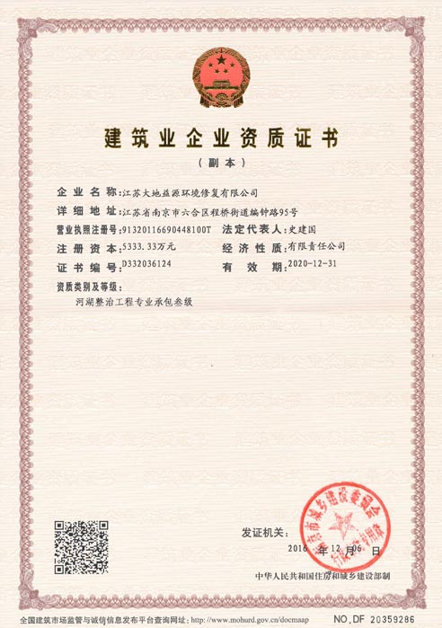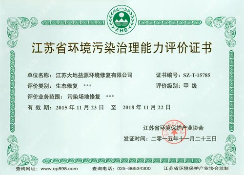 江蘇省環(huán)境污染治理甲級(jí)資質(zhì)