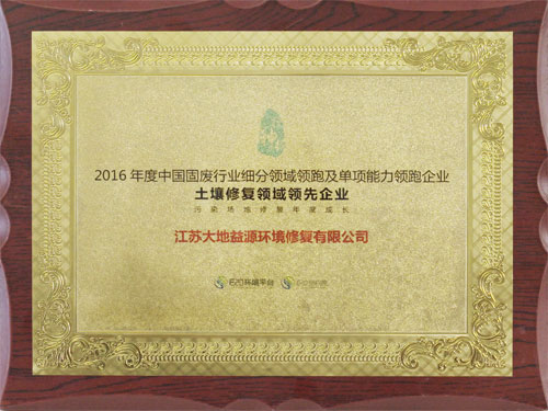 中國固廢行業(yè)土壤修復(fù)領(lǐng)域(2014、2016)年度領(lǐng)先企業(yè)