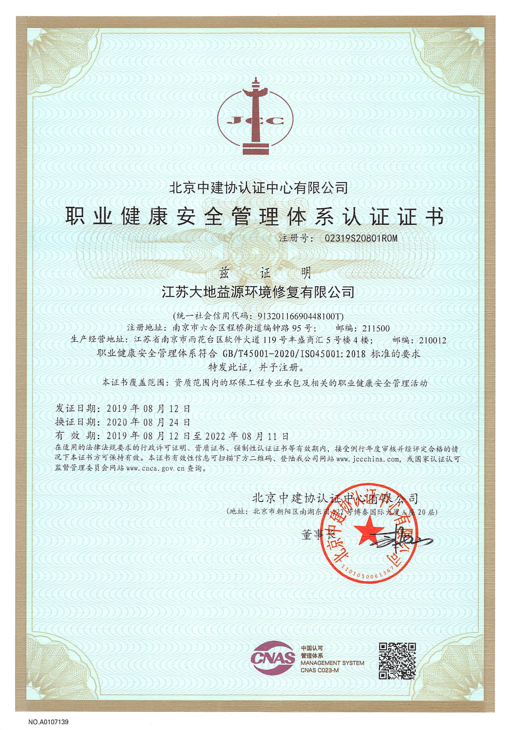 GB/T45001-2020職業(yè)健康安全管理體系認(rèn)證證書