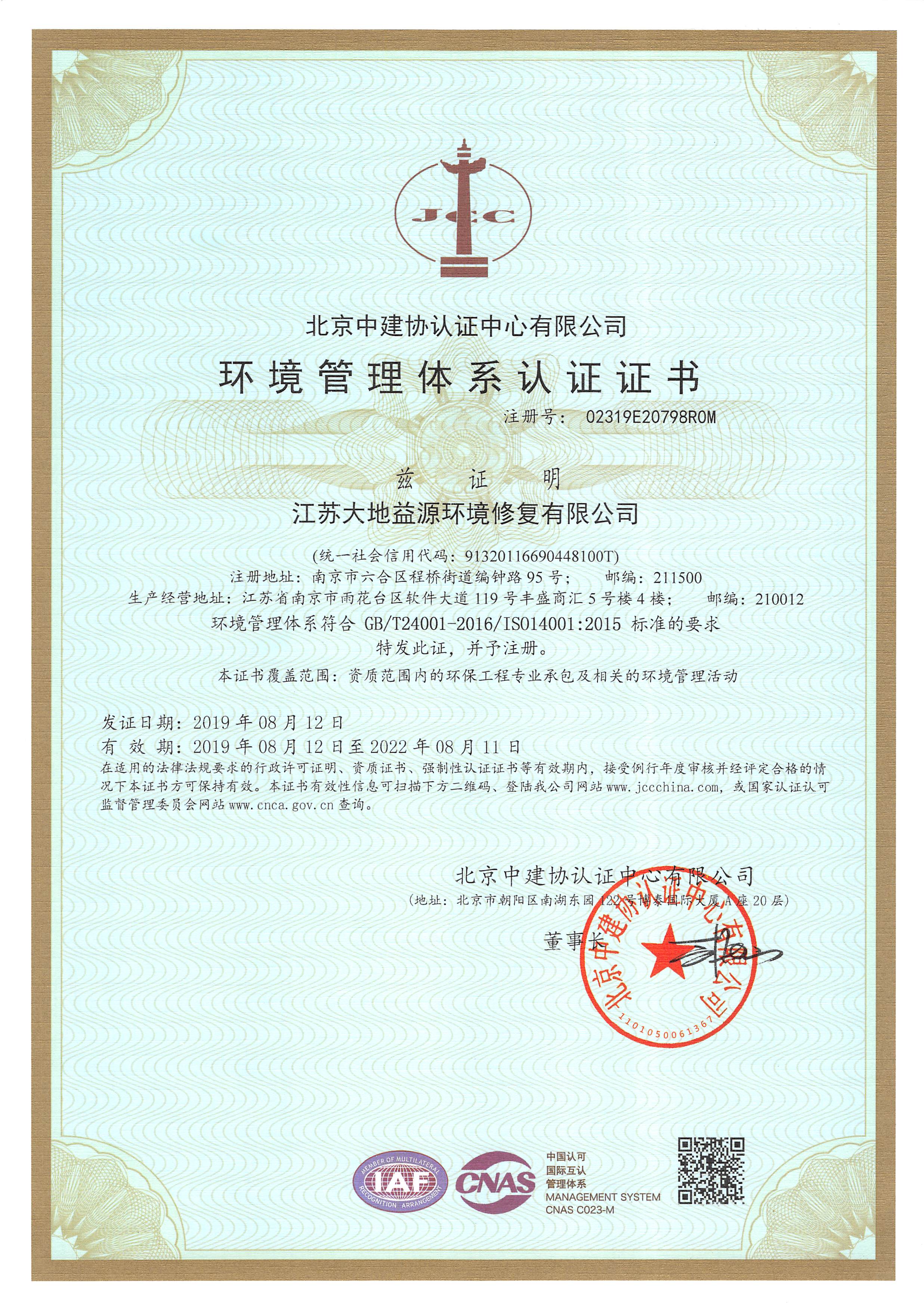 ISO14001:2015環(huán)境管理體系認(rèn)證證書