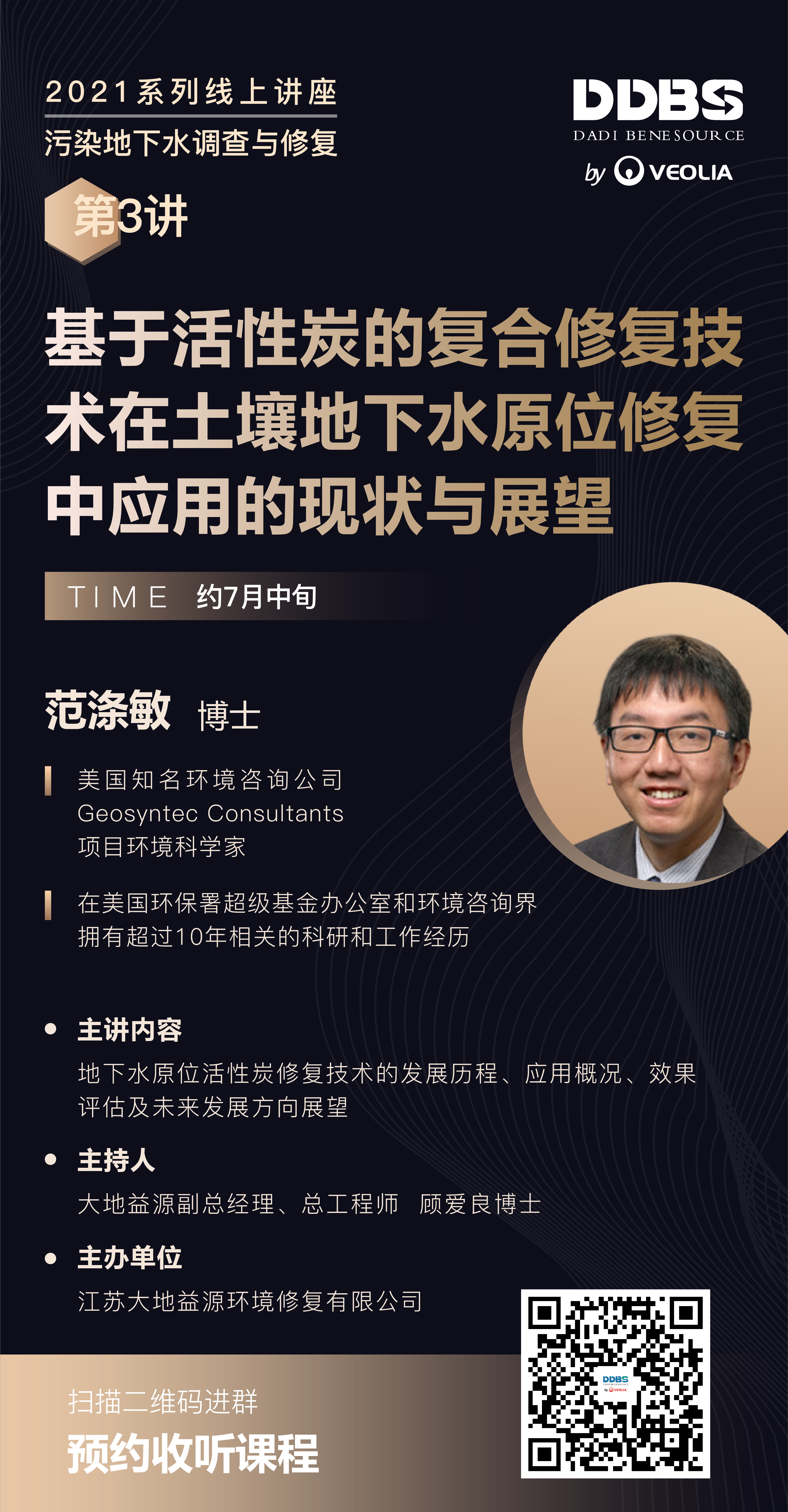 2021年度DDBS系列講座第三期,由范滌敏博士主講題為“基于活性炭的復(fù)合修復(fù)技術(shù)在土壤地下水原位修復(fù)中應(yīng)用的現(xiàn)狀與展望”主題講座。