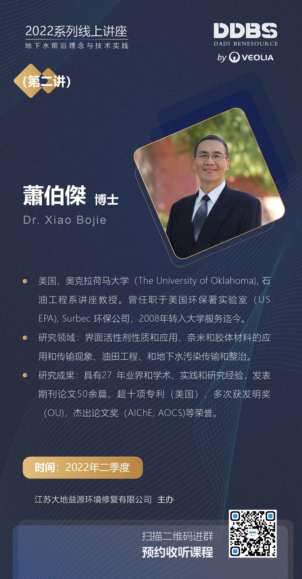 第一期講座順利結束,第二期我們已在精心準備,即將開啟!第二期講座將邀請美國奧克拉荷馬大學石油工程系教授蕭伯傑博士為大家帶來土壤修復相關講座: