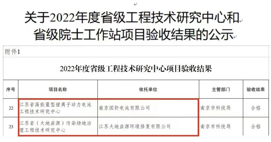 近日,江蘇省科技廳公示了2022年度省級(jí)工程技術(shù)研究中心驗(yàn)收結(jié)果,江蘇大地益源環(huán)境修復(fù)有限公司順利通過(guò),為六合區(qū)2家通過(guò)驗(yàn)收企業(yè)之一。