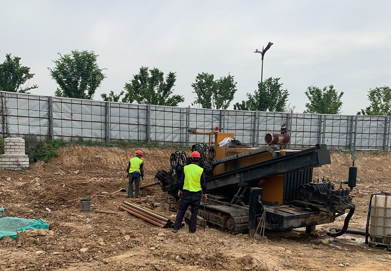該工程位于南京市棲霞區(qū)燕子磯片區(qū),設(shè)計(jì)處理土壤9001m3、地下水13974㎡;實(shí)際處理土壤9240m3、地下水13420㎡。采用水平井注入修復(fù)工藝進(jìn)行修復(fù),工藝流程包括:污染地下水刻畫→水平修復(fù)井工藝設(shè)計(jì)→數(shù)值模擬論證→施工鉆孔定位→水平定向鉆進(jìn)、擴(kuò)孔→預(yù)制水平井管回拖鋪設(shè)→水平井洗井→藥劑注射→地下水監(jiān)測(cè)。