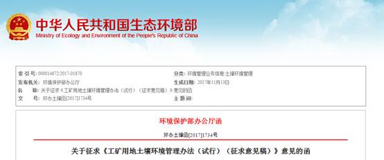 生態環境部令部令 第3號工礦用地土壤環境管理辦法(試行) 《工礦用地土壤環境管理辦法(試行)》已于2018年4月12日由生態環境部部務會議審議通過,現予公布,自2018年8月1日起施行。 生態環境...