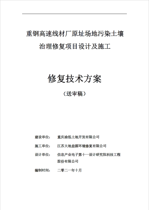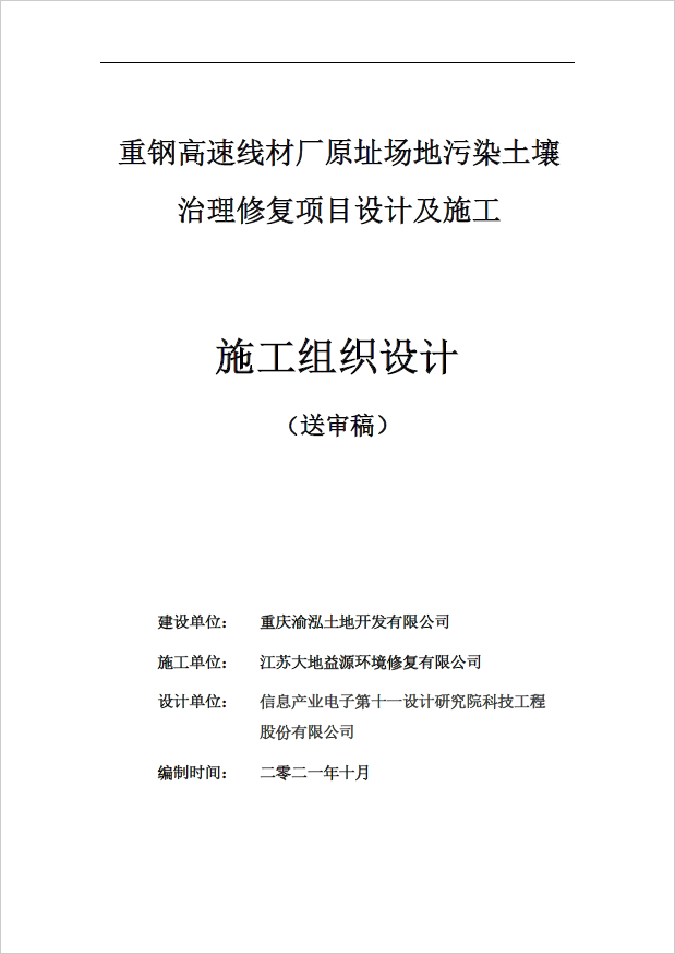重鋼高速線材廠原址場地污染土壤 治理修復項目設計及施工施工組織設計及修復技術方案