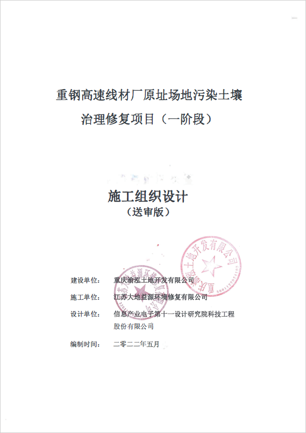 重鋼高速線材廠原址場地污染土壤治理修復項目(一階段)施工組織設計及修復技術方案