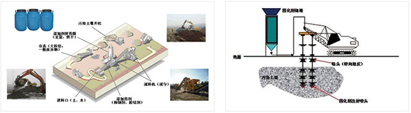 固化/穩定化(Solidification/Stabilization),是比較成熟的固體廢物處置技術。該技術通過向污染土壤中添加固化/穩定化藥劑,經充分混合,使其與污染介質、污染物發生物理化學作用(螯合、離子鍵和合、沉淀、吸附等),將污染土壤固封為結構完整的具有低滲透性的固化體,或將污染物轉化成化學性質不活潑形態,降低污染物在環境中的遷移和擴散。
